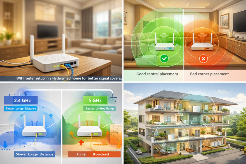 Poor router placement and incorrect setup are responsible for more internet performance complaints in Hyderabad homes than actual ISP issues. The good news is that fixing this costs nothing — it just requires understanding a few principles about how Wi-Fi signals actually travel through the kinds of buildings people live in across Hyderabad.